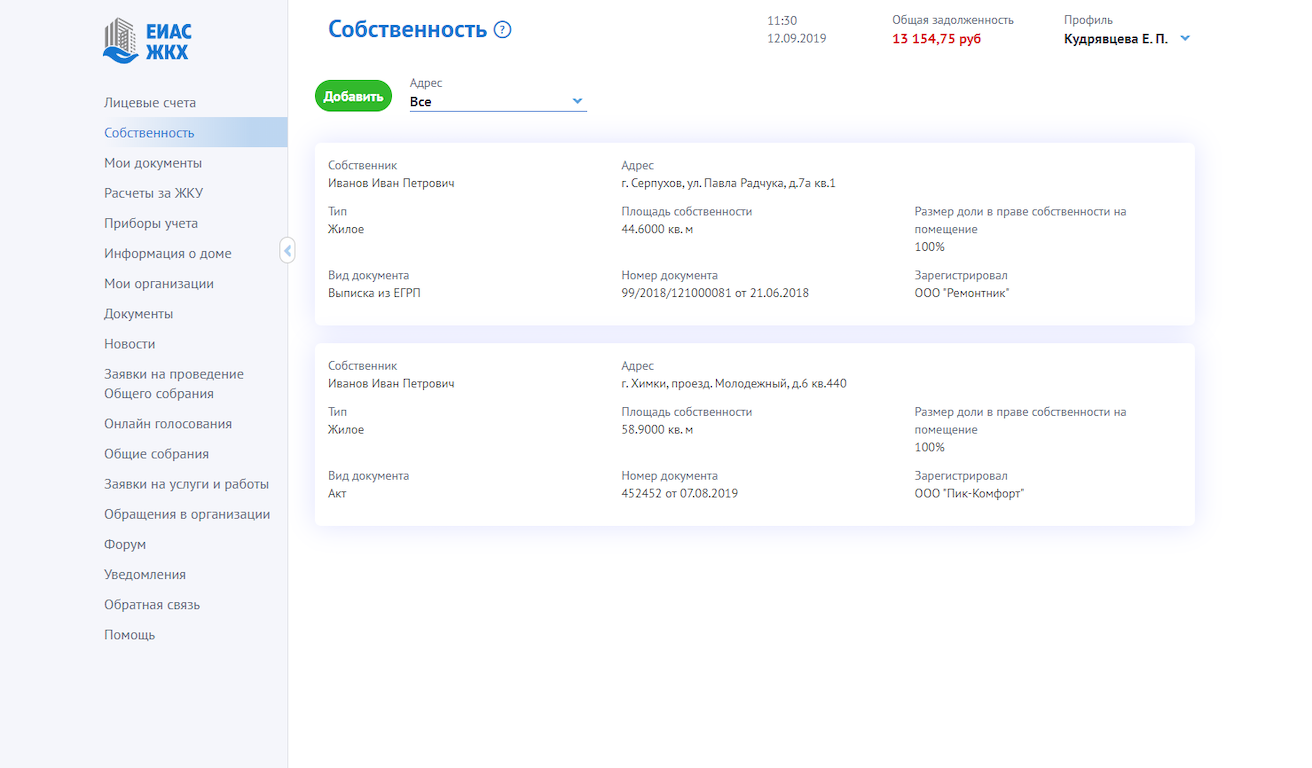 - просмотреть информацию индивидуальным и общедомовым приборам учета.